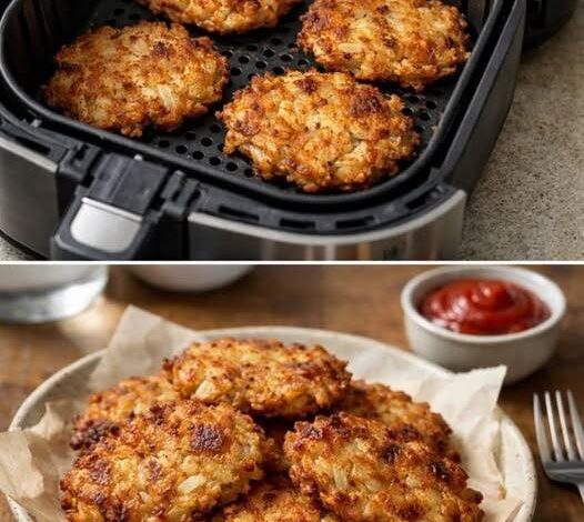 Take about ¼ cup of the grated potato mixture and form it into a small patty. Repeat until all the mixture is used up. You should have about 4–6 patties, depending on the size. - Air Fry: