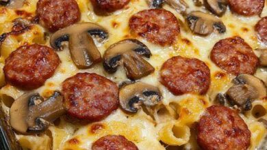 Oven-Baked Sausage and Mushroom Pasta Gratin