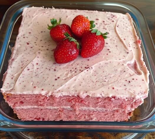 10. Frost and Decorate: Add the second cake layer and frost the entire cake with the remaining icing. You can decorate with fresh strawberries if desired.