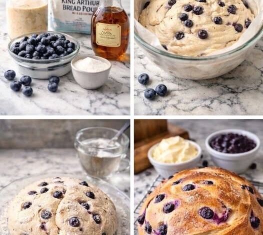 Blueberry Artisan Bread is a rustic, lightly sweet loaf with a crisp golden crust and a soft, airy interior studded with juicy blueberries. Slightly chewy and beautifully textured, this bread feels like something straight from a small artisan bakery.