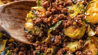 Quick Description A savory one-pan skillet made with tender ground beef, caramelized Brussels sprouts, and a flavorful Asian-inspired sauce. It’s…