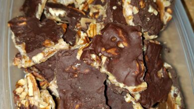Flaky cracker crust with buttery toffee topped with melted Lily’s chocolate chips, pecans, and sea salt. These Keto Crack Toffee…