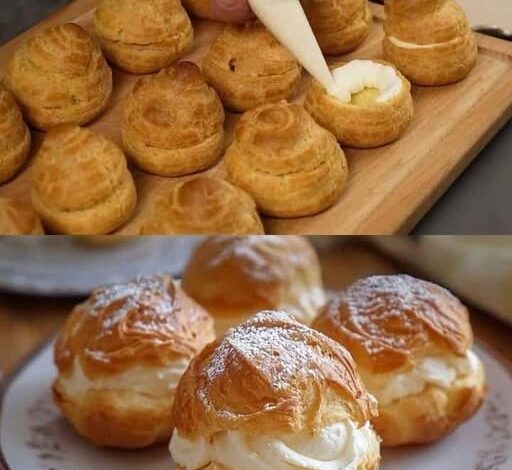 - Once cooled, fill the cream puffs with the custard using a piping bag or by cutting them open and spooning in the filling