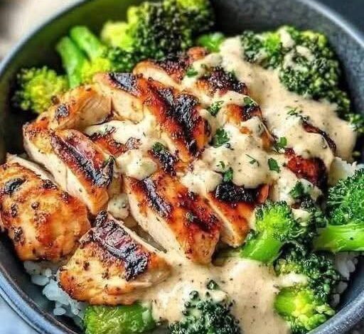 This Creamy Garlic Chicken & Broccoli Protein Bowl is a balanced, satisfying meal made with juicy grilled chicken, tender broccoli, fluffy rice, and a rich creamy garlic sauce. It’s high in protein, comforting, and perfect for meal prep or an easy weeknight dinner that feels restaurant-quality but is simple to make at home.