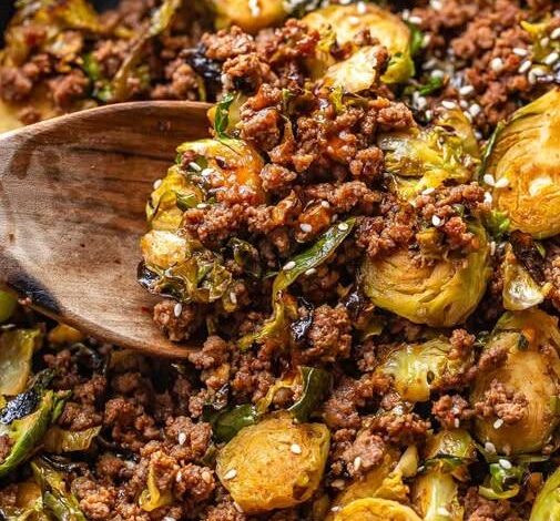 A savory one-pan skillet made with tender ground beef, caramelized Brussels sprouts, and a flavorful Asian-inspired sauce. It’s high in protein, low in carbs, and perfect for meal prep or a quick weeknight dinner.