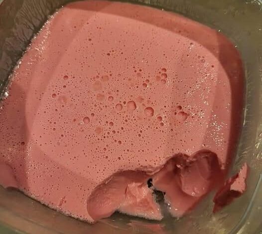 Empty the raspberry-flavored jelly packet into a large mixing bowl.