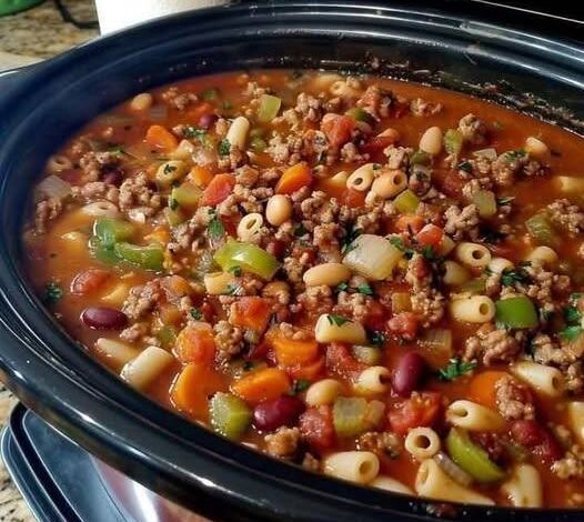 - Add crushed tomatoes, broth, water, beans, seasonings, and bay leaf.