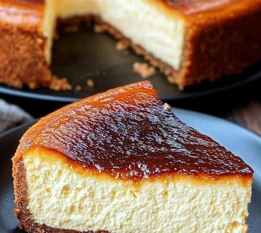3. Bake: Pour the cheesecake batter into the prepared pan. Bake in the preheated oven for about 50-60 minutes, or until the top is deeply browned (almost charred) and the center is still slightly jiggly. The cheesecake will firm up as it cools.