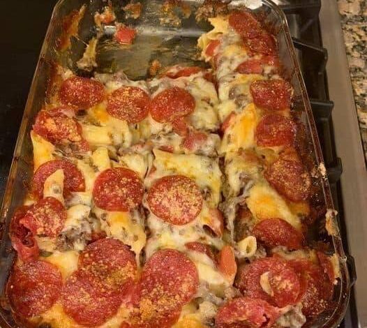 • As the casserole bakes, the cheese melts into every corner, the pepperoni crisps at the edges, and the sauce bubbles up, coating the pasta. When you pull it out of the oven, it’s like lifting a bubbling tray of pizza-meets-lasagna heaven