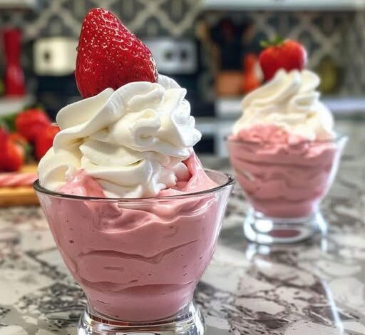 4. Combine Mixtures: Gently fold the strawberry mixture into the whipped cream until fully incorporated and smooth.