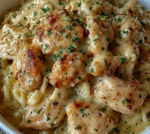 • In the same skillet, add the egg noodles and pour in the chicken broth. Bring to a gentle boil, then reduce heat and simmer, stirring occasionally, until noodles are tender and most of the liquid is absorbed (about 8–10 minutes).