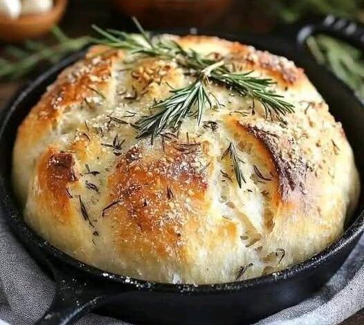 Rustic No-Knead Rosemary Garlic Bread (Cast-Iron or Oven)