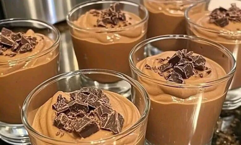 Top each mousse cup with chopped dark chocolate before serving. Serve chilled.